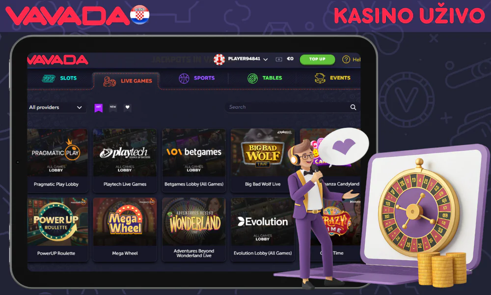 Uz iskusne djelitelje koji tečno govore hrvatski kao i dinamičnu igru koja stvara uzbudljivu atmosferu, live casino Vavada je posebno mjesto. Vrlo je blizu iskustvu iz stvarnog života. Dobivate zanimljive razgovore s krupijeima i drugim igračima, streamove visoke razlučivosti, izbore klađenja s visokim koeficijentima, različite mehanike igranja i pristup 24/7, čak i na mobilnom uređaju. Predstavljena su 4 pružatelja – Pragmatic Play, Evolution, Playtech i BetGames. Vavada casino neprestano dodaje nove igre već impresivnoj postavi. Igre koje se najviše igraju su: