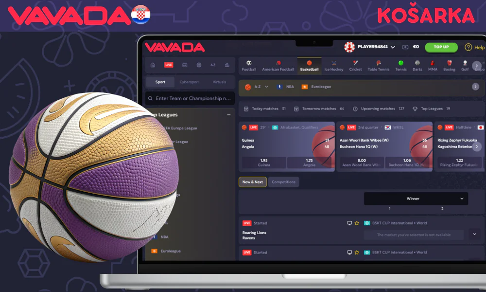 Ovaj sport je omiljen zbog eksplozivne akcije, bliskih poziva i njuha. Vavada je usavršio klađenje na košarku nudeći veliki izbor tržišta klađenja, privlačne tečajeve i opsežnu pokrivenost vrhunskih turnira. Možete igrati na performanse pojedinačnih igrača ili tržišta klađenja na ukupni/ispod u sljedećim natjecanjima: