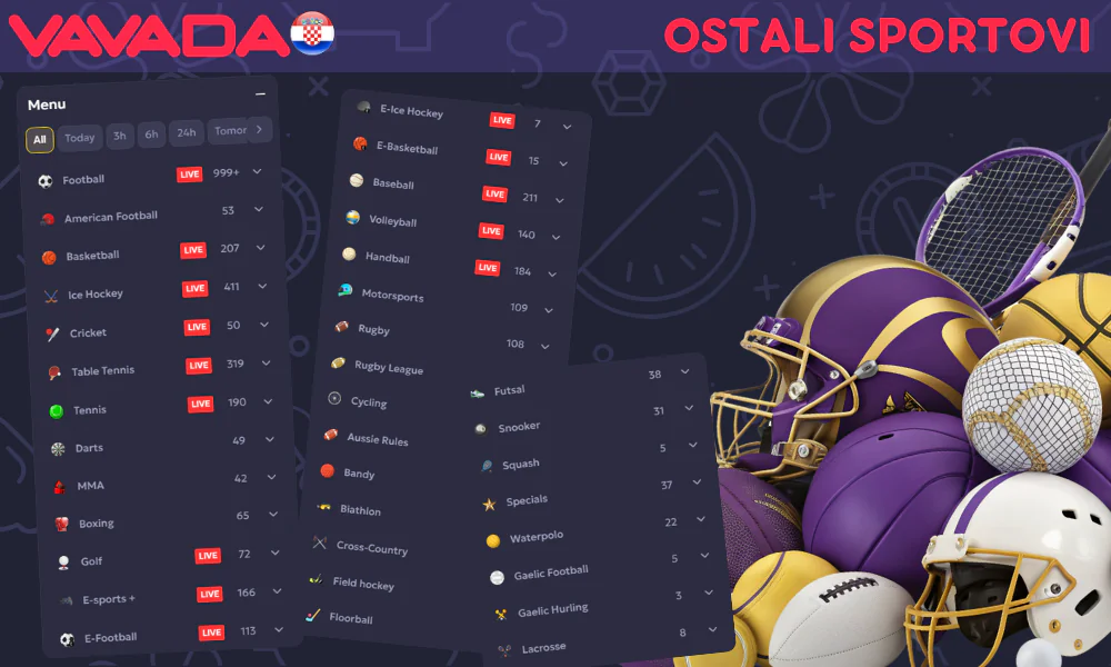 Vavada Hrvatska privlači mnoge interese izvan mainstreama. Za ljude koji traže nešto novo, ovi sportovi nude priliku naučiti nešto o novom sportu i uključiti se u dobro pokrivene turnire. Možete se kladiti na golf, stolni tenis, kriket, floorbal, snooker, pa čak i na specijalne ponude kao što su nagrade iz politike ili industrije zabave. Među glavnim natjecanjima su sljedeća: