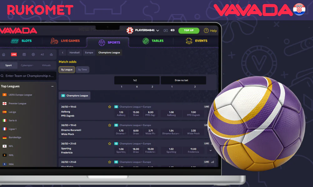 Rukomet ima veliki broj sljedbenika, posebno u Europi, zahvaljujući brzim igrama i golovima. Za ljubitelje ovog sporta Vavada nudi zanimljiv izbor jer Hrvatima omogućuje klađenje na natjecanja svih razina. Sportska kladionica nudi izbor klađenja uživo s visokim koeficijentima, funkciju pravljenja klađenja i mnoge druge prednosti. Među velikim natjecanjima su sljedeća: