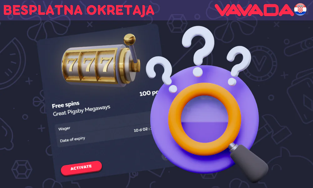 Kada iskoristite sva besplatna okretaja, dobitak će biti prikazan u prozoru ponude i pripisan računu kao bonus sredstva. Da bi ih pretvorio u gotovinu, korisnik mora ispuniti uvjet oklade od 20x dobivenog dobitka. Vavada postavlja sljedeće uvjete: